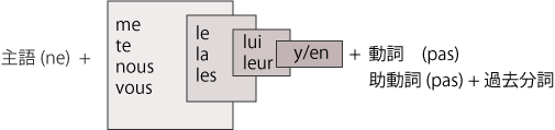 | 直接目的語 | me (m') | te(t') | le (l') | la (l') | nous | vous | les | les |